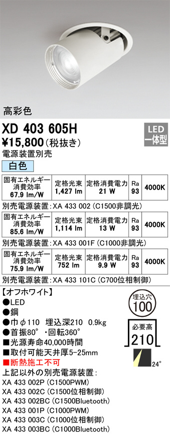 ODELIC ¥ª¡¼¥Ç¥ê¥Ã¥¯ ¥À¥¦¥ó¥é¥¤¥È XD403605H