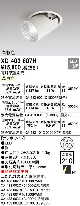ODELIC ¥ª¡¼¥Ç¥ê¥Ã¥¯ ¥À¥¦¥ó¥é¥¤¥È XD403607H