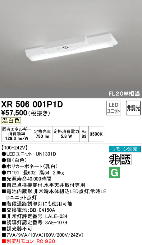 ODELIC ¥ª¡¼¥Ç¥ê¥Ã¥¯ Èó¾ïÅô¡¦Í¶Æ³Åô XR506001P1D