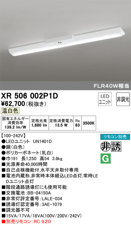 ODELIC ¥ª¡¼¥Ç¥ê¥Ã¥¯ Èó¾ïÅô¡¦Í¶Æ³Åô XR506002P1D