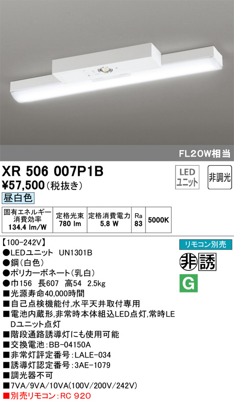 ODELIC ¥ª¡¼¥Ç¥ê¥Ã¥¯ Èó¾ïÅô¡¦Í¶Æ³Åô XR506007P1B