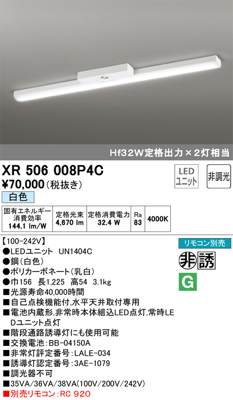 ODELIC ¥ª¡¼¥Ç¥ê¥Ã¥¯ Èó¾ïÅô¡¦Í¶Æ³Åô XR506008P4C