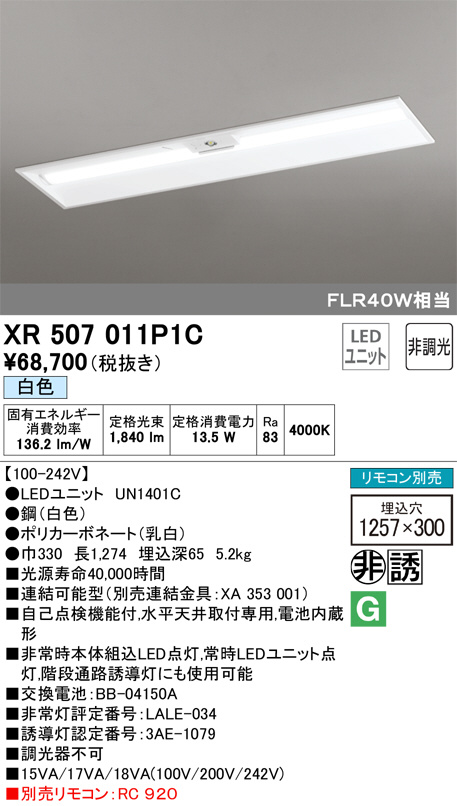 ODELIC ¥ª¡¼¥Ç¥ê¥Ã¥¯ Èó¾ïÅô¡¦Í¶Æ³Åô XR507011P1C