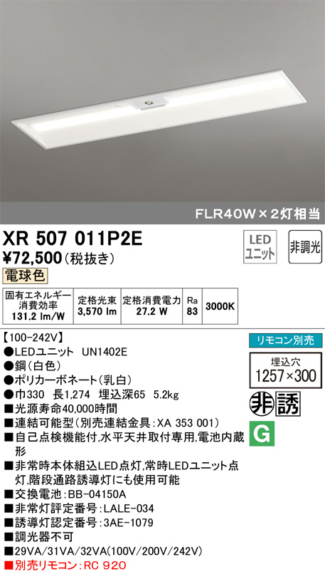 ODELIC ¥ª¡¼¥Ç¥ê¥Ã¥¯ Èó¾ïÅô¡¦Í¶Æ³Åô XR507011P2E