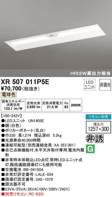 ODELIC ¥ª¡¼¥Ç¥ê¥Ã¥¯ Èó¾ïÅô¡¦Í¶Æ³Åô XR507011P5E