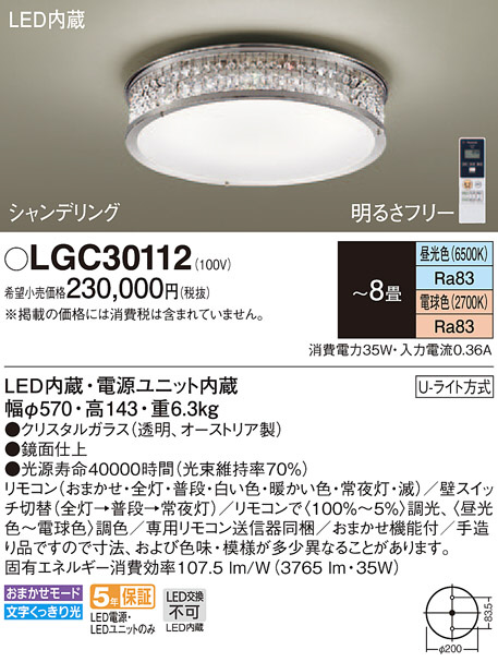 Panasonic ¥·¡¼¥ê¥ó¥°¥é¥¤¥È LGC30112