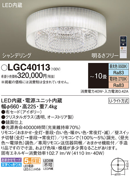 Panasonic ¥·¡¼¥ê¥ó¥°¥é¥¤¥È LGC40113