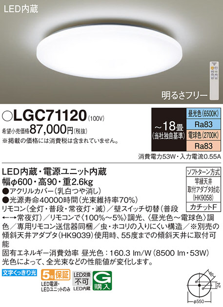 Panasonic ¥·¡¼¥ê¥ó¥°¥é¥¤¥È LGC71120