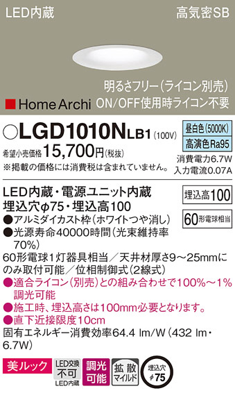 Panasonic ¥À¥¦¥ó¥é¥¤¥È LGD1010NLB1