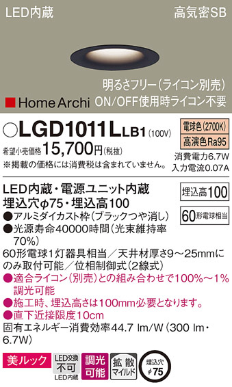Panasonic ¥À¥¦¥ó¥é¥¤¥È LGD1011LLB1