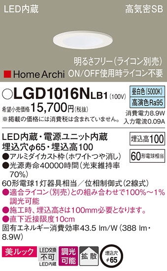 Panasonic ¥À¥¦¥ó¥é¥¤¥È LGD1016NLB1