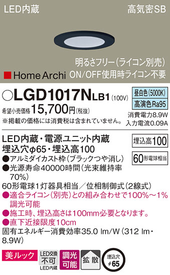 Panasonic ¥À¥¦¥ó¥é¥¤¥È LGD1017NLB1