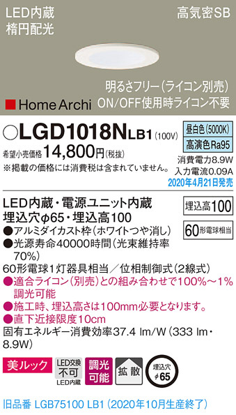 Panasonic ¥À¥¦¥ó¥é¥¤¥È LGD1018NLB1