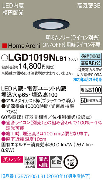 Panasonic ¥À¥¦¥ó¥é¥¤¥È LGD1019NLB1