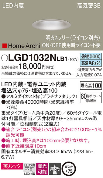 Panasonic ¥À¥¦¥ó¥é¥¤¥È LGD1032NLB1