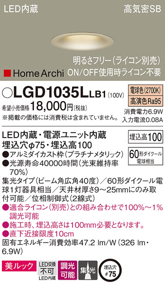 Panasonic ¥À¥¦¥ó¥é¥¤¥È LGD1035LLB1