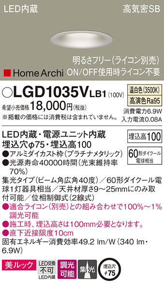 Panasonic ¥À¥¦¥ó¥é¥¤¥È LGD1035VLB1