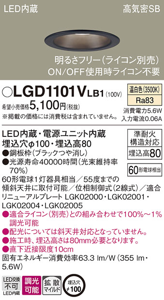 Panasonic ¥À¥¦¥ó¥é¥¤¥È LGD1101VLB1