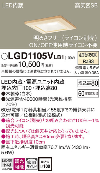 Panasonic ¥À¥¦¥ó¥é¥¤¥È LGD1105VLB1