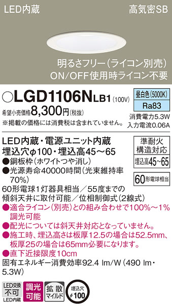 Panasonic ¥À¥¦¥ó¥é¥¤¥È LGD1106NLB1