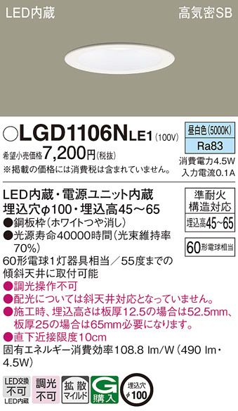 Panasonic ¥À¥¦¥ó¥é¥¤¥È LGD1106NLE1