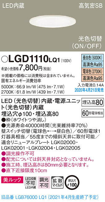 Panasonic ¥À¥¦¥ó¥é¥¤¥È LGD1110LQ1