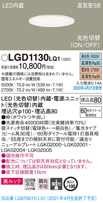 Panasonic ¥À¥¦¥ó¥é¥¤¥È LGD1130LQ1