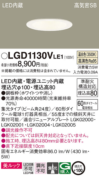Panasonic ¥À¥¦¥ó¥é¥¤¥È LGD1130VLE1