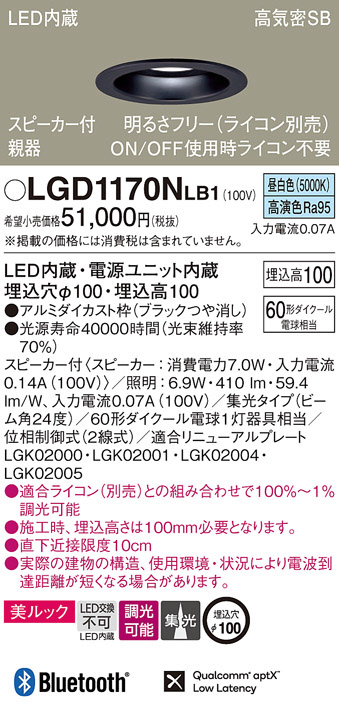 Panasonic ¥À¥¦¥ó¥é¥¤¥È LGD1170NLB1