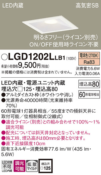Panasonic ¥À¥¦¥ó¥é¥¤¥È LGD1202LLB1