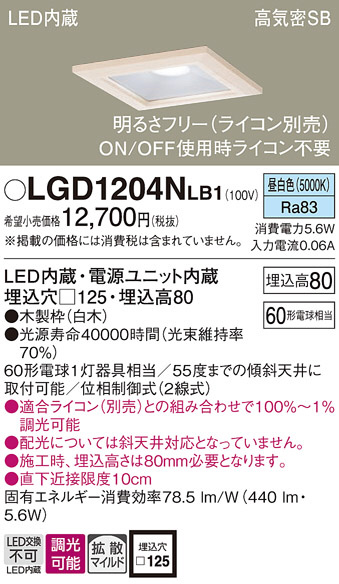 Panasonic ¥À¥¦¥ó¥é¥¤¥È LGD1204NLB1