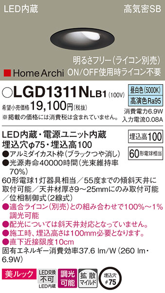 Panasonic ¥À¥¦¥ó¥é¥¤¥È LGD1311NLB1