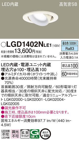 Panasonic ¥À¥¦¥ó¥é¥¤¥È LGD1402NLE1