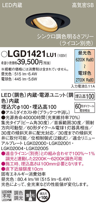 Panasonic ¥À¥¦¥ó¥é¥¤¥È LGD1421LU1
