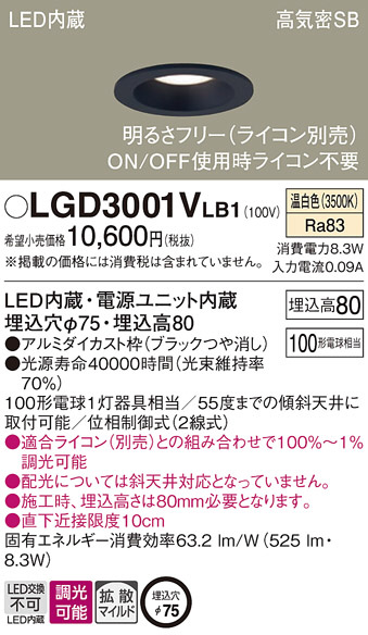 Panasonic ¥À¥¦¥ó¥é¥¤¥È LGD3001VLB1
