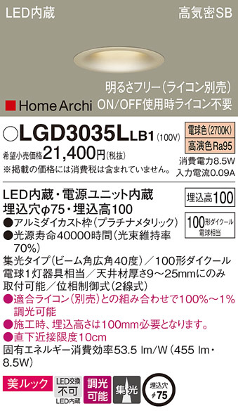 Panasonic ¥À¥¦¥ó¥é¥¤¥È LGD3035LLB1