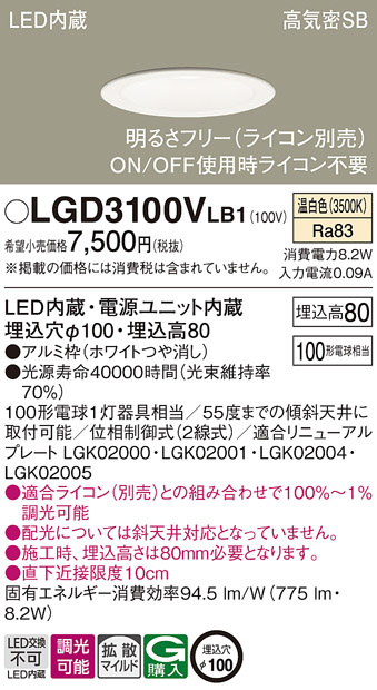 Panasonic ¥À¥¦¥ó¥é¥¤¥È LGD3100VLB1