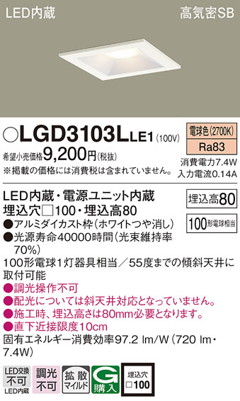 Panasonic ¥À¥¦¥ó¥é¥¤¥È LGD3103LLE1