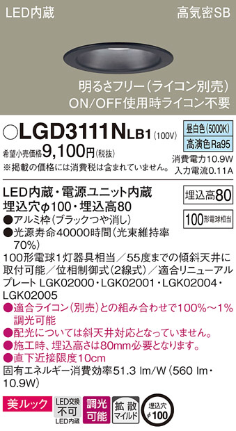 Panasonic ¥À¥¦¥ó¥é¥¤¥È LGD3111NLB1