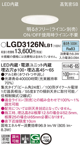 Panasonic ¥À¥¦¥ó¥é¥¤¥È LGD3126NLB1