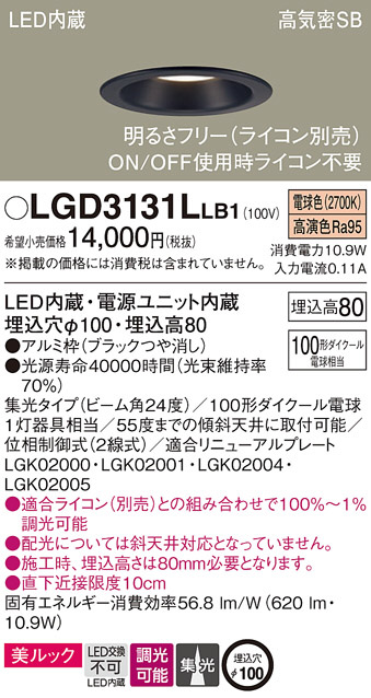 Panasonic ¥À¥¦¥ó¥é¥¤¥È LGD3131LLB1