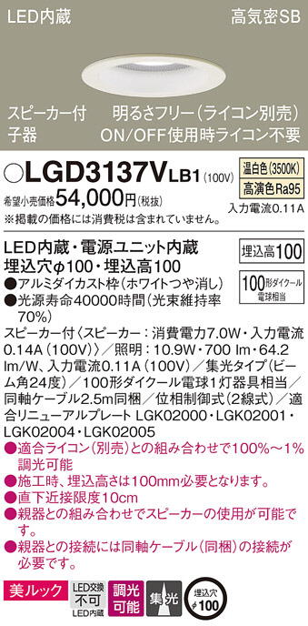 Panasonic ¥À¥¦¥ó¥é¥¤¥È LGD3137VLB1