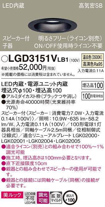 Panasonic ¥À¥¦¥ó¥é¥¤¥È LGD3151VLB1