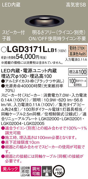 Panasonic ¥À¥¦¥ó¥é¥¤¥È LGD3171LLB1