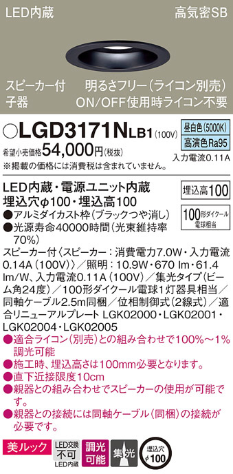 Panasonic ¥À¥¦¥ó¥é¥¤¥È LGD3171NLB1