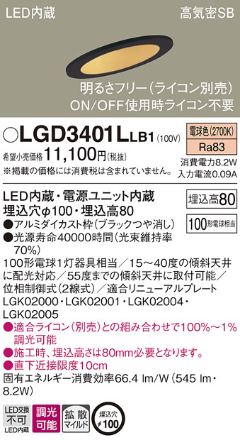 Panasonic ¥À¥¦¥ó¥é¥¤¥È LGD3401LLB1