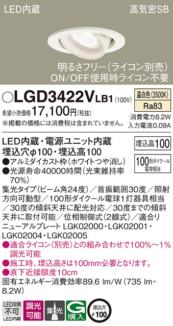 Panasonic ¥À¥¦¥ó¥é¥¤¥È LGD3422VLB1