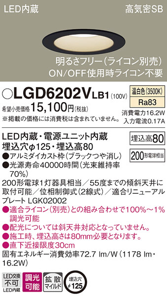 Panasonic ¥À¥¦¥ó¥é¥¤¥È LGD6202VLB1