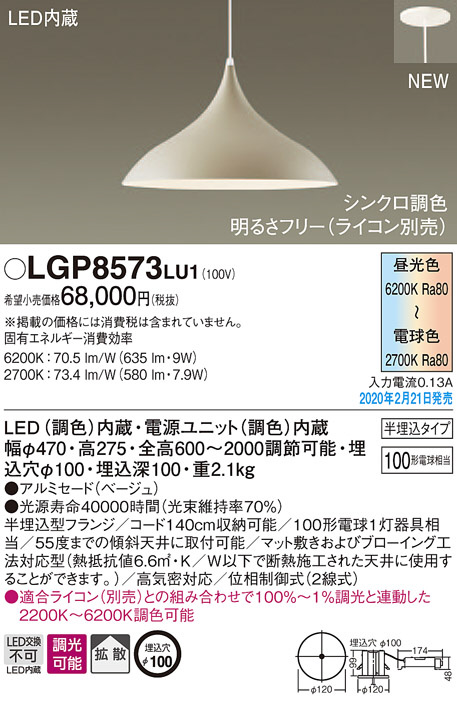 Panasonic ¥Ú¥ó¥À¥ó¥È LGP8573LU1
