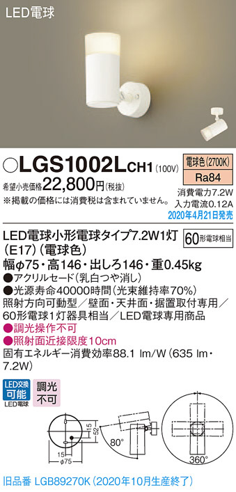 Panasonic ¥¹¥Ý¥Ã¥È¥é¥¤¥È LGS1002LCH1